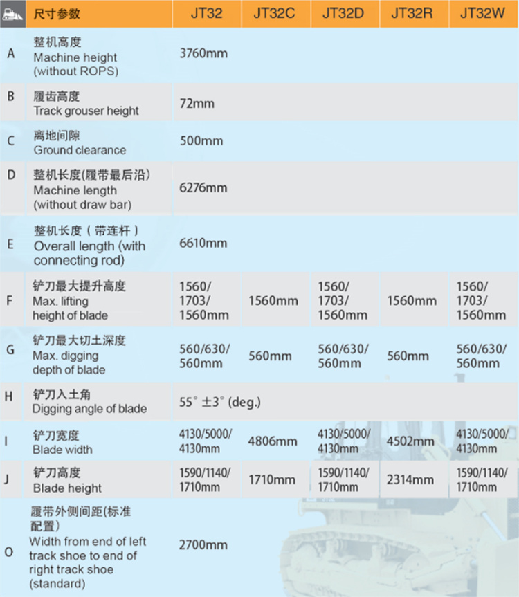 JT32推土機是一種工程車輛,前方裝有大型的金屬推土刀,使用時放下推土刀,向前鏟削并推送泥、沙及石塊等,推土刀位置和角度可以調(diào)整,主要適用于鐵路、公路、機場等地面的開挖、推運等。